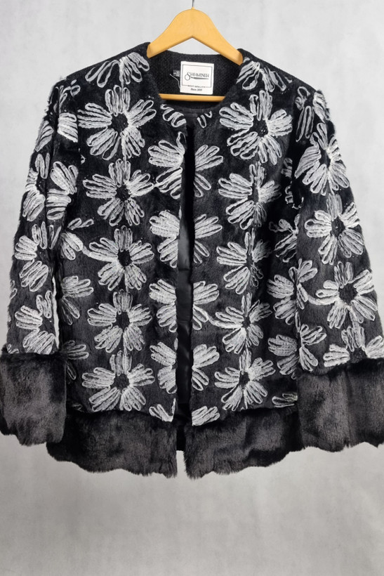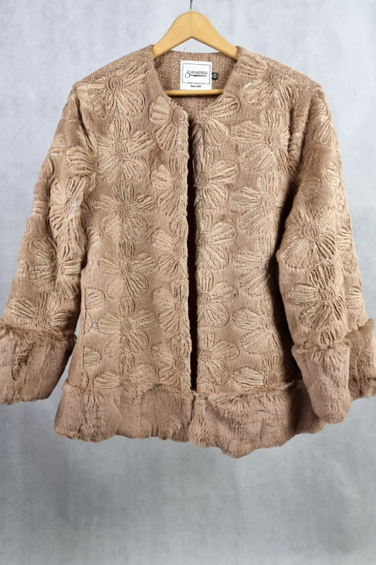 کت مجلسی پاییزه زنانه مدل گل جنس پوست ترکیب با خز کد10