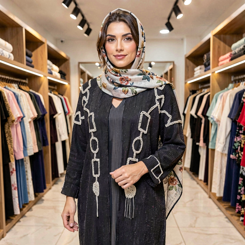 مانتو عبائی مدل مکعب جنس کرپ کبریتی